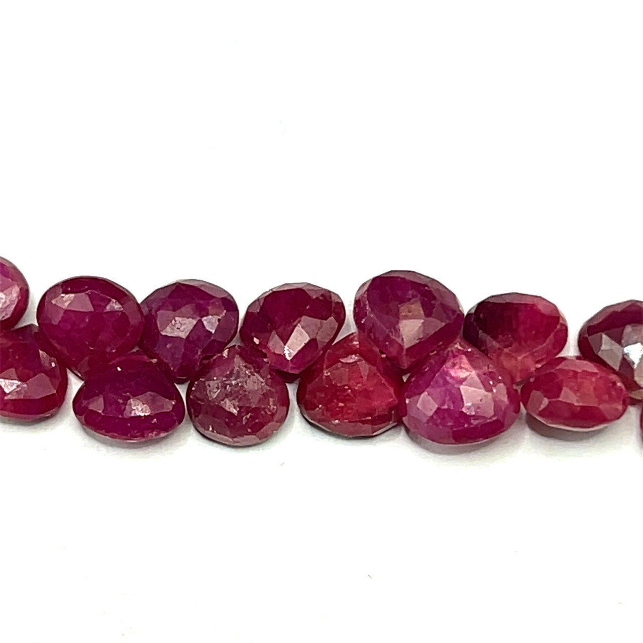 Natural African Ruby Briolette Faceted Heart Beads | 7mm | 62 Pcs 115 Carats | Scarlet Red | VS Clarity | 8.9 Inch Precious Gemstone Jewelry Making