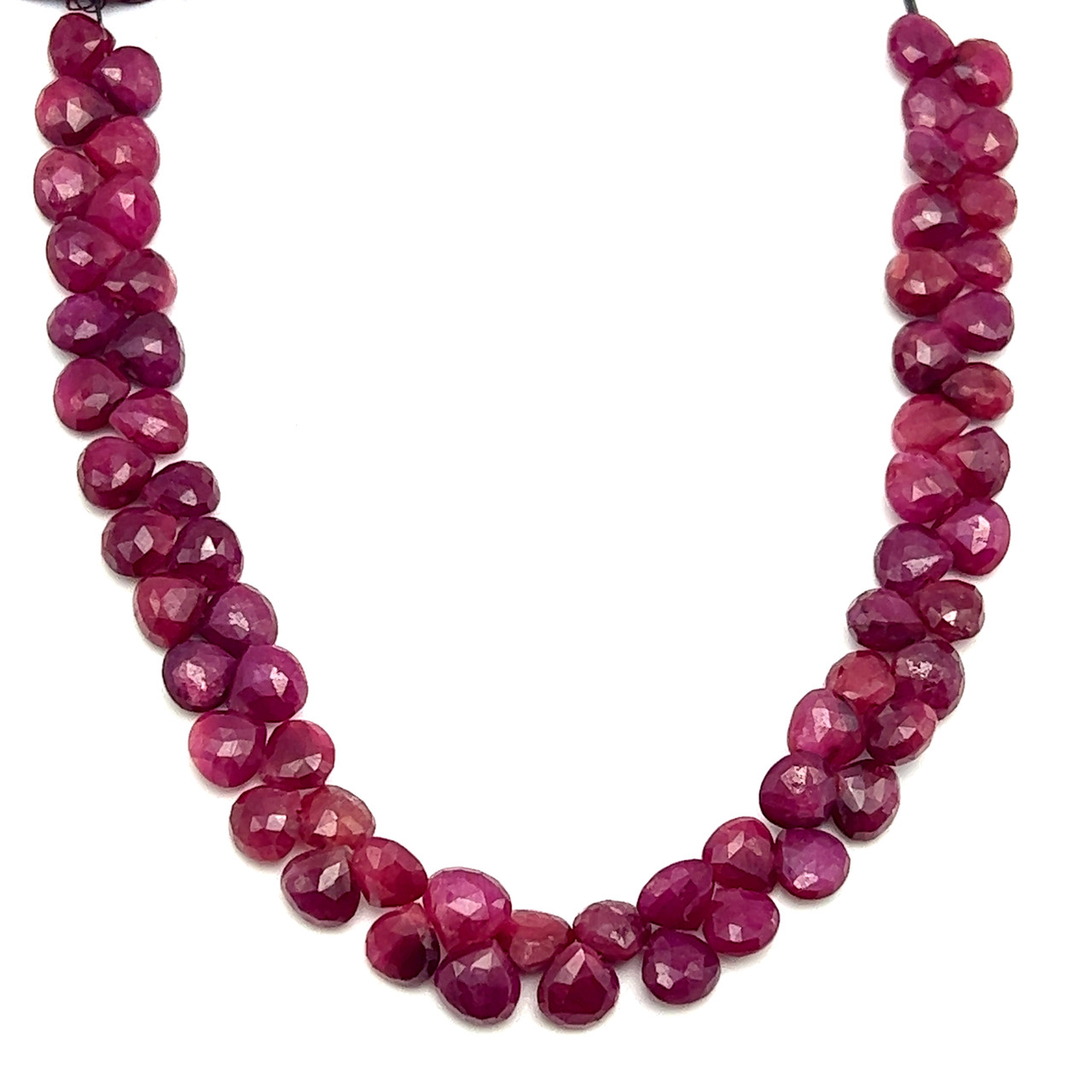 Natural African Ruby Briolette Faceted Heart Beads | 7mm | 62 Pcs 115 Carats | Scarlet Red | VS Clarity | 8.9 Inch Precious Gemstone Jewelry Making