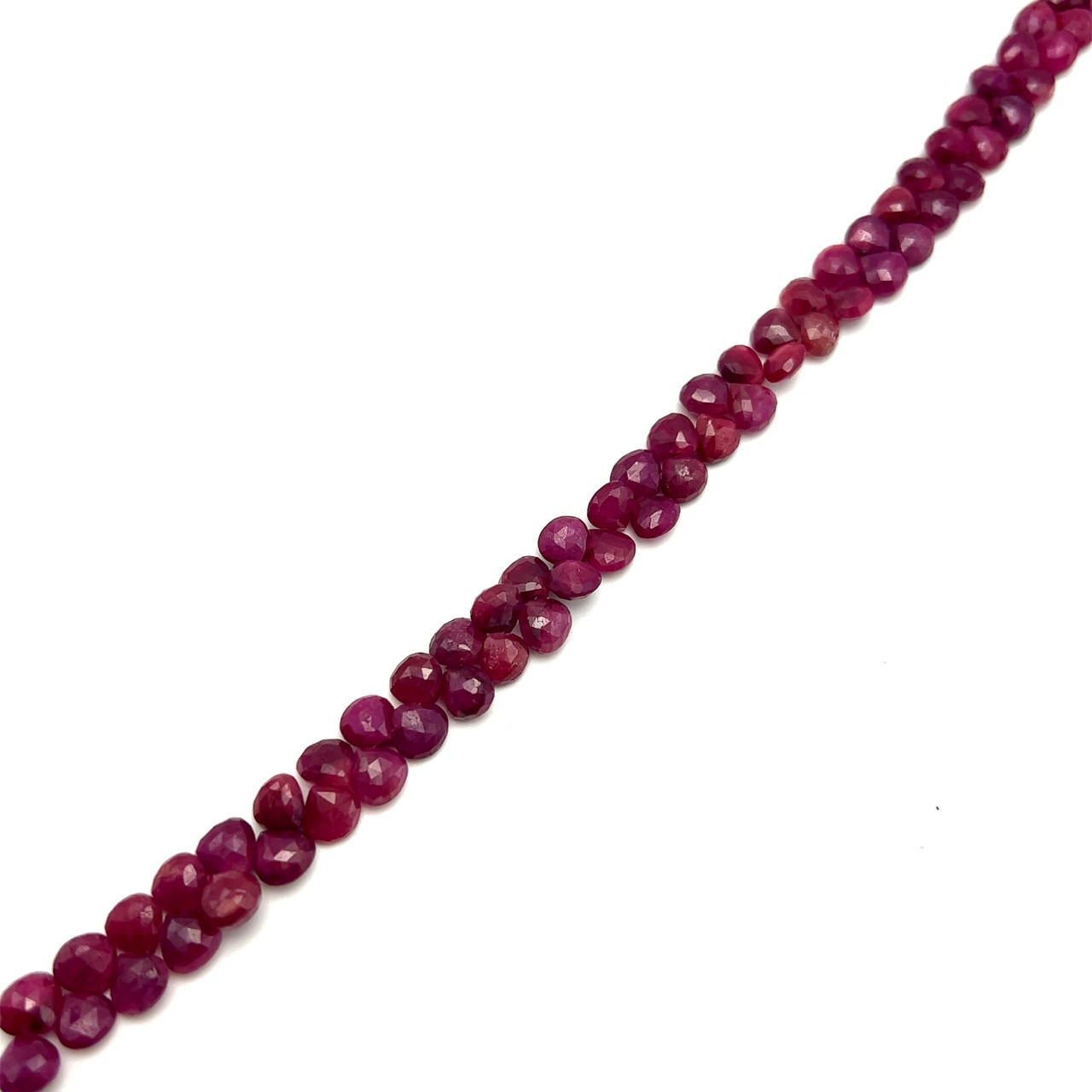 Natural African Ruby Briolette Faceted Heart Beads | 7mm | 62 Pcs 115 Carats | Scarlet Red | VS Clarity | 8.9 Inch Precious Gemstone Jewelry Making