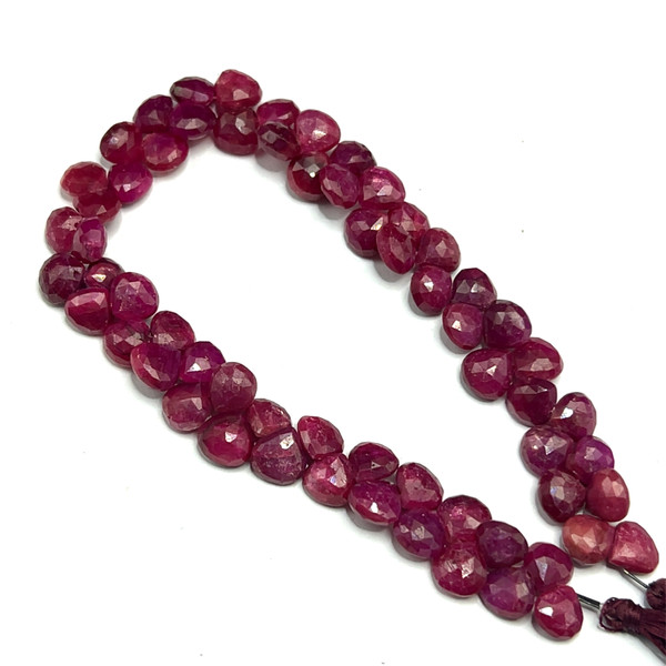 Natural African Ruby Briolette Faceted Heart Beads | 7mm | 62 Pcs 121 Carats | Scarlet Red | VS Clarity | 8.5 Inch Precious Gemstone Jewelry Making