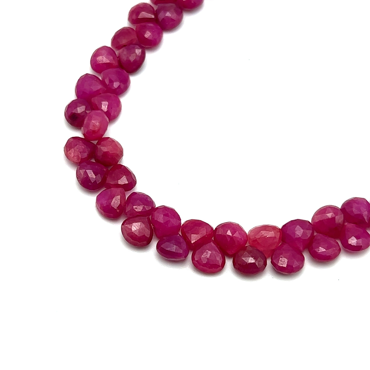 Natural African Ruby Briolette Faceted Heart Beads | 7mm | 65 Pcs 124 Carats | Hot Pink | SI1 Clarity | 9.6 Inch Precious Gemstone Jewelry Making
