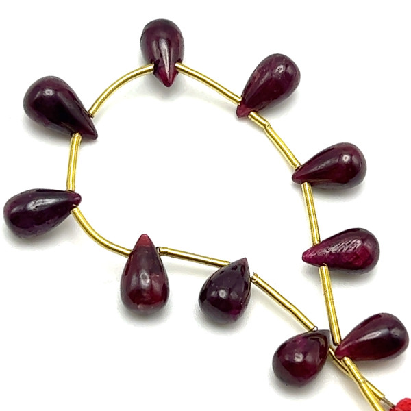 Natural African Ruby Drop Beads | 9x5-10x6mm Plain Smooth | 10 Pcs 25 Carats | Rich Crimson Red | VVS Clarity | 5 Inch Length Precious Gemstone Jewelry Making