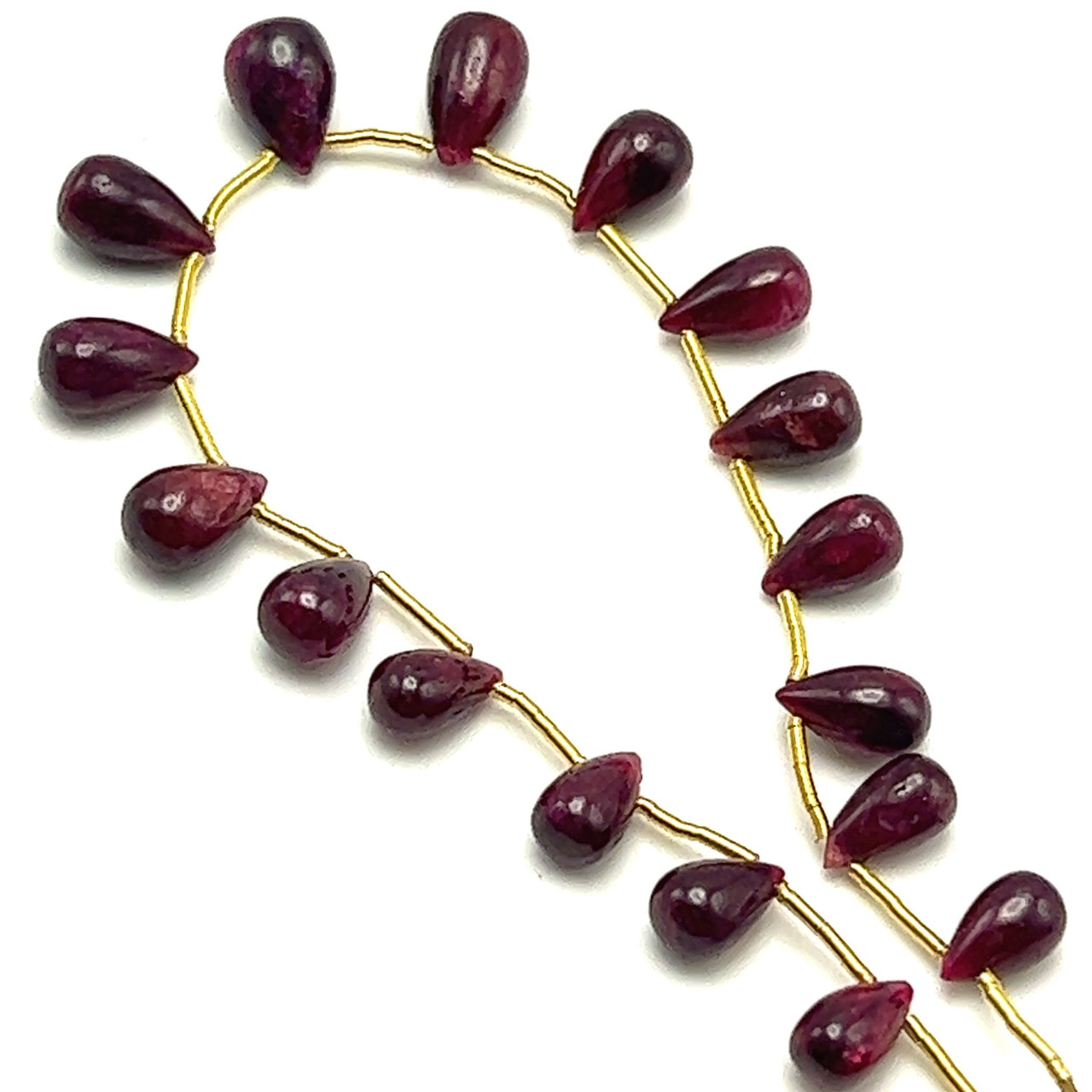 Natural African Ruby Drop Beads | 9x5-11x7mm Plain Smooth | 17 Pcs 50 Carats | Rich Crimson Red | VVS Clarity | 7.3 Inch Length Precious Gemstone Jewelry Making