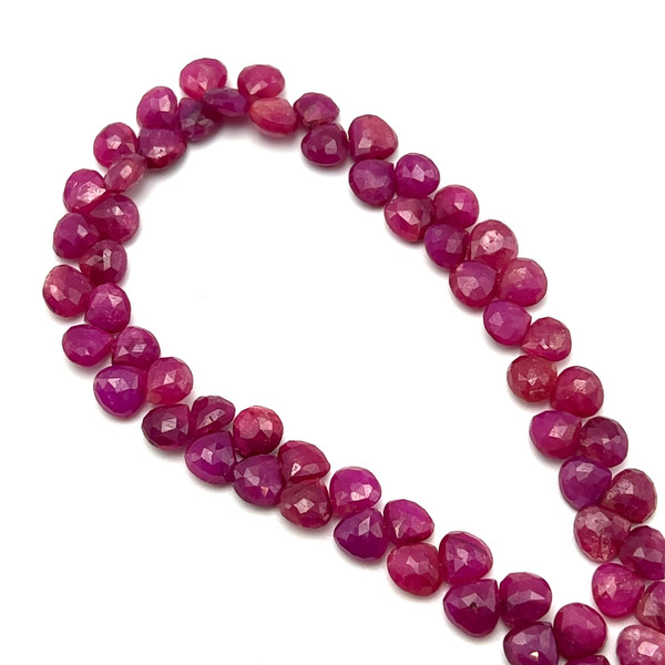 Natural African Ruby Heart Briolette Beads | 7mm | 60 Pcs 110 Carats | Carmine Red | SI1 Clarity | 9.1 Inch Precious Gemstone for Fine Jewelry Making
