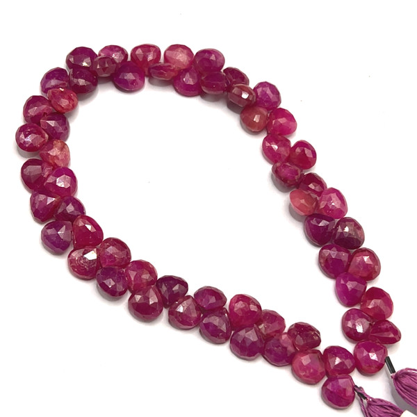 Natural African Ruby Heart Briolette Beads | 7mm | 60 Pcs 112 Carats | Carmine Red | SI1 Clarity | 8.5 Inch Precious Gemstone for Fine Jewelry Making