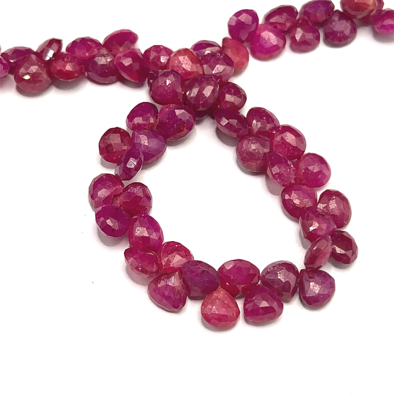 Natural African Ruby Heart Briolette Beads | 7mm | 61 Pcs 102 Carats | Carmine Red | SI1 Clarity | 8.5 Inch Precious Gemstone for Fine Jewelry Making
