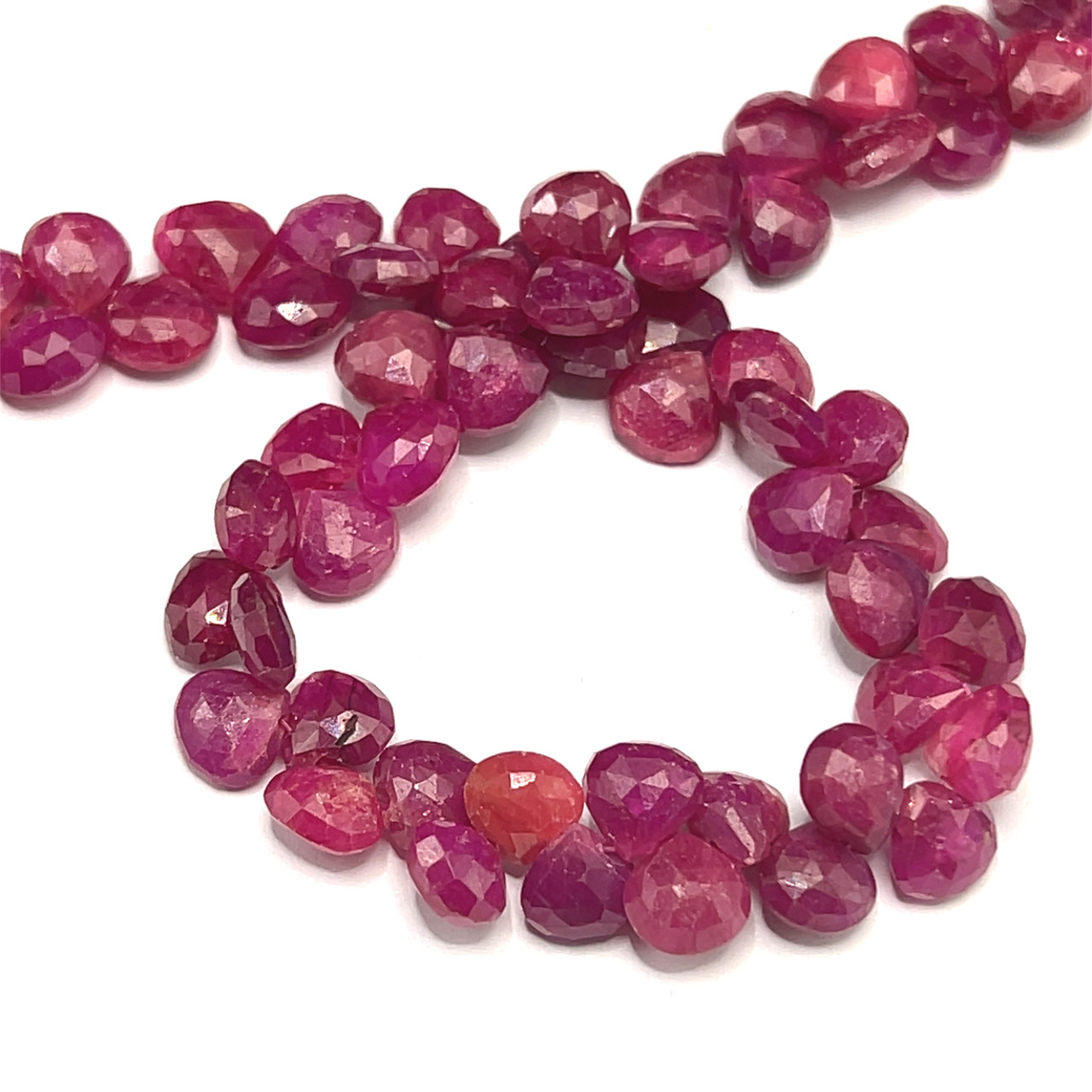 Natural African Ruby Heart Briolette Faceted Beads | 7mm | 64 Pcs 113 Carats | Carmine Red | SI1 Clarity | 8.7 Inch Precious Gemstone for Fine Jewelry Making