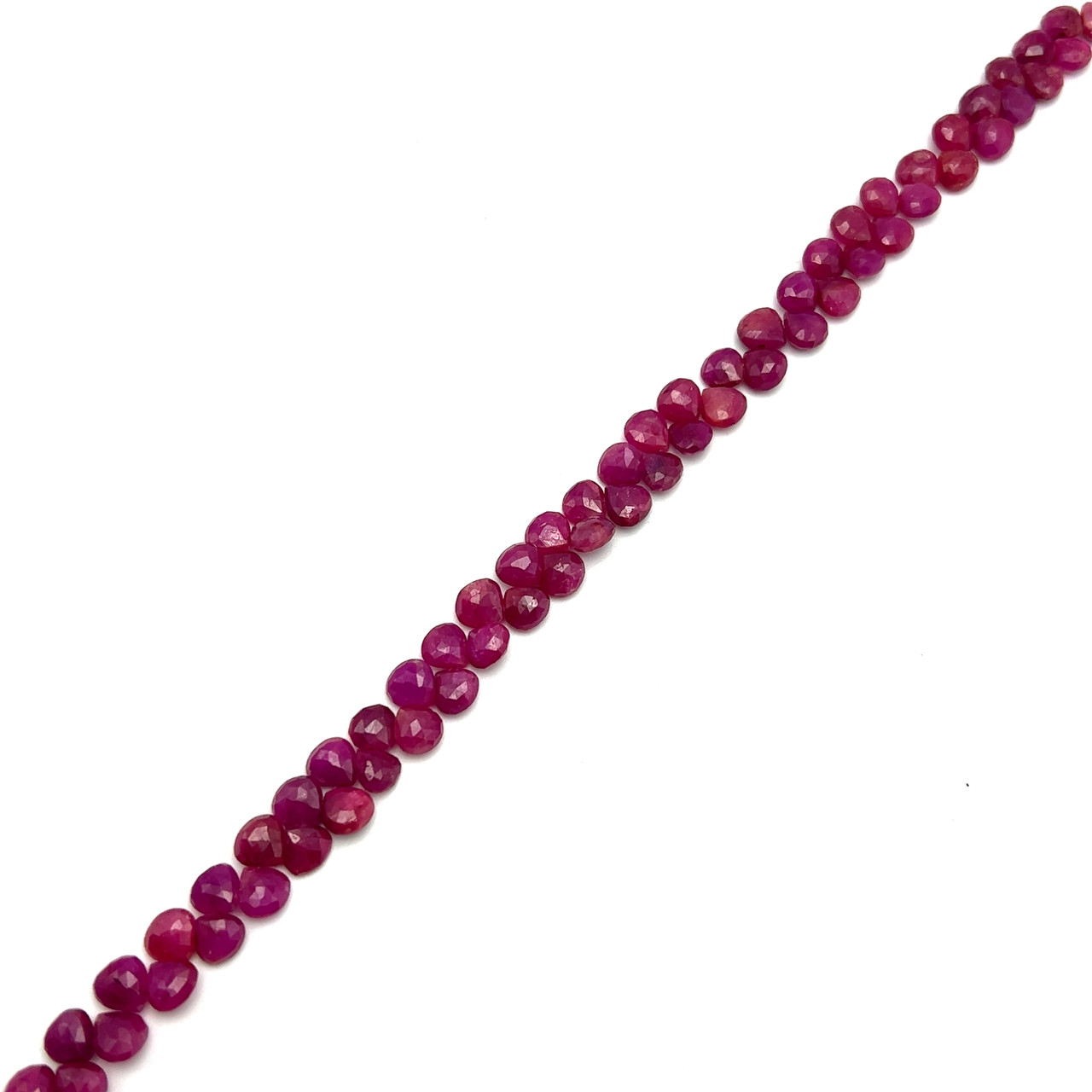 Natural African Ruby Heart Briolette Faceted Beads | 7mm | 64 Pcs 120 Carats | Carmine Red | SI1 Clarity | 9 Inch Precious Gemstone for Fine Jewelry Making