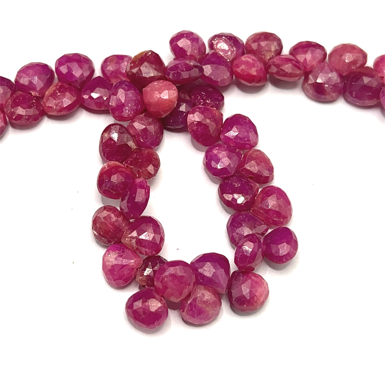 Natural African Ruby Heart Briolette Faceted Beads | 7mm | 64 Pcs 120 Carats | Carmine Red | SI1 Clarity | 9 Inch Precious Gemstone for Fine Jewelry Making