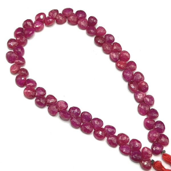 Natural African Ruby Heart Briolette Faceted Beads | 7mm | 66 Pcs 121 Carats | Hot Pink | VS Clarity | 10.1 Inch Precious Gemstone for Fine Jewelry Making