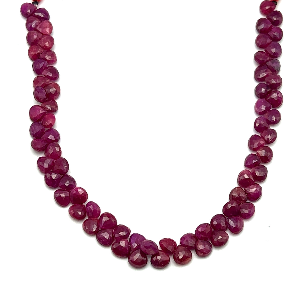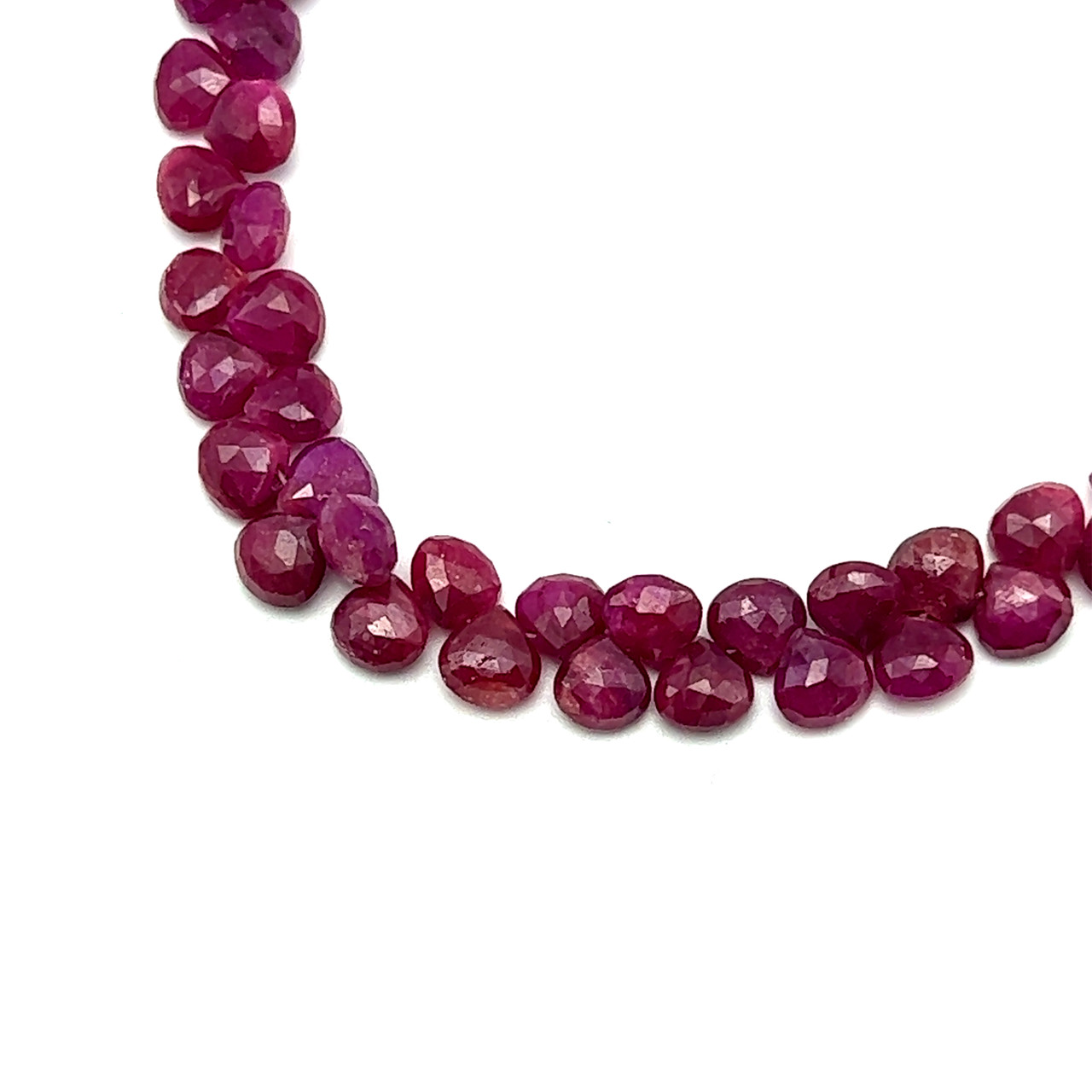Natural African Ruby Heart Briolette Faceted Beads | 7mm | 69 Pcs 122 Carats | Carmine Red | SI1 Clarity | 10 Inch Precious Gemstone for Fine Jewelry Making