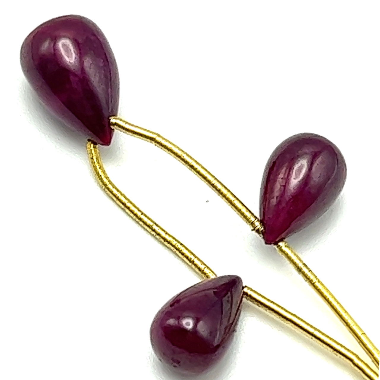 Natural African Ruby Smooth Drop Beads | 12.7x8-11x7mm | 3 Pcs 17 Carats | Burgundy Red VVS Clarity | July Birthstone for Jewelry Making