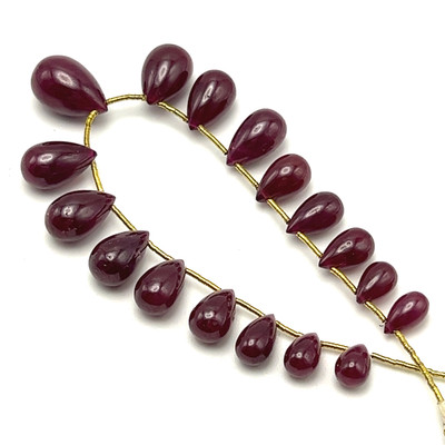 Natural African Ruby Smooth Drop Beads | 9x6-16.5x11mm | 17 Pcs 121 Carats | Burgundy Red VVS Clarity | Precious Loose Gemstone for Jewelry Making