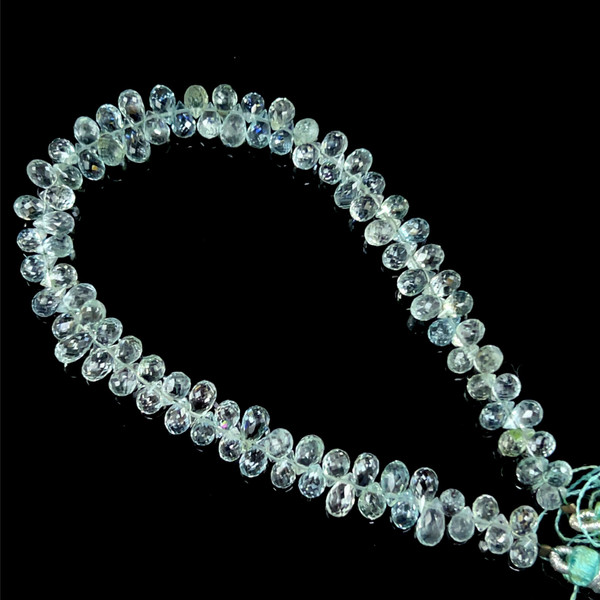 Natural Aquamarine 6x4mm Drop Briolette Cut VVS Clarity Aqua Sky Blue Color Drill Gemstone