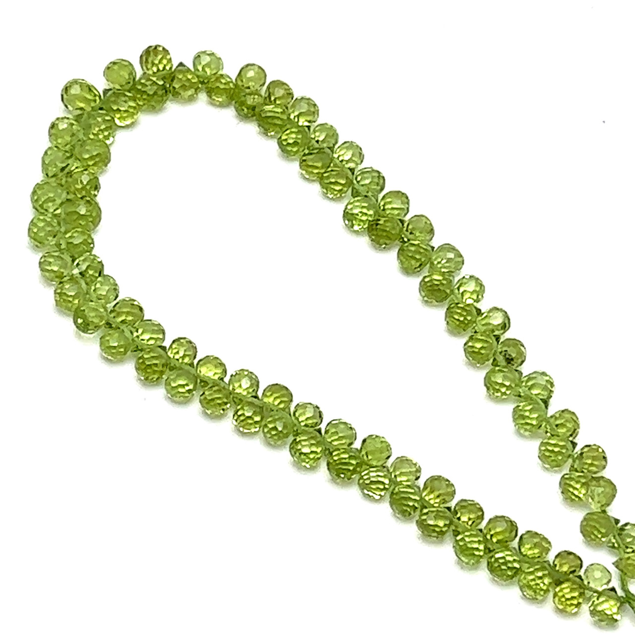 Natural Arizona Peridot Briolette Faceted Drop Beads | 5x4mm | 74 Pcs 39 Carats | Intense Green | VVS Clarity | 6.8 Inch Strand Semiprecious Gemstone Jewelry Making
