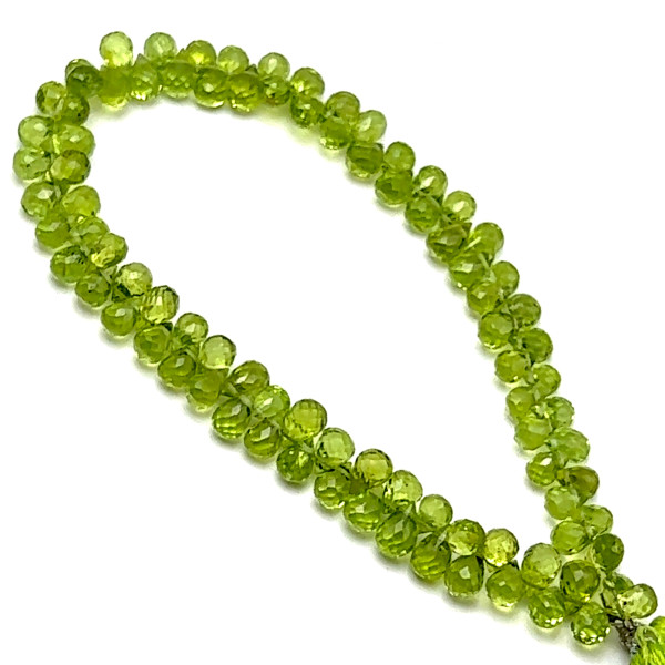 Natural Arizona Peridot Briolette Faceted Drop Beads | 5x4mm | 98 Pcs 47 Carats | Lime Green | VS Clarity | 8 Inch Strand Semiprecious Gemstone Jewelry Making