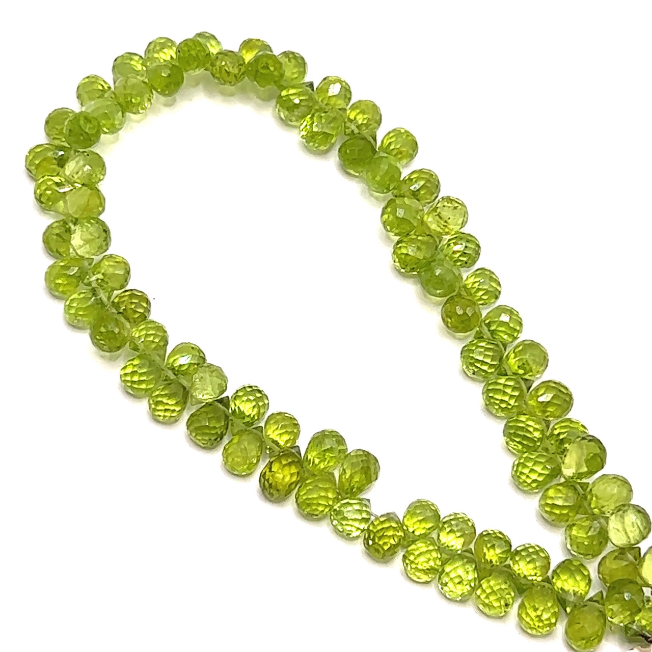 Natural Arizona Peridot Briolette Faceted Drop Beads | 6.5x4.5mm | 81 Pcs 83 Carats | Intense Green | VVS Clarity | 8.25 Inch Strand Semiprecious Gemstone Jewelry Making