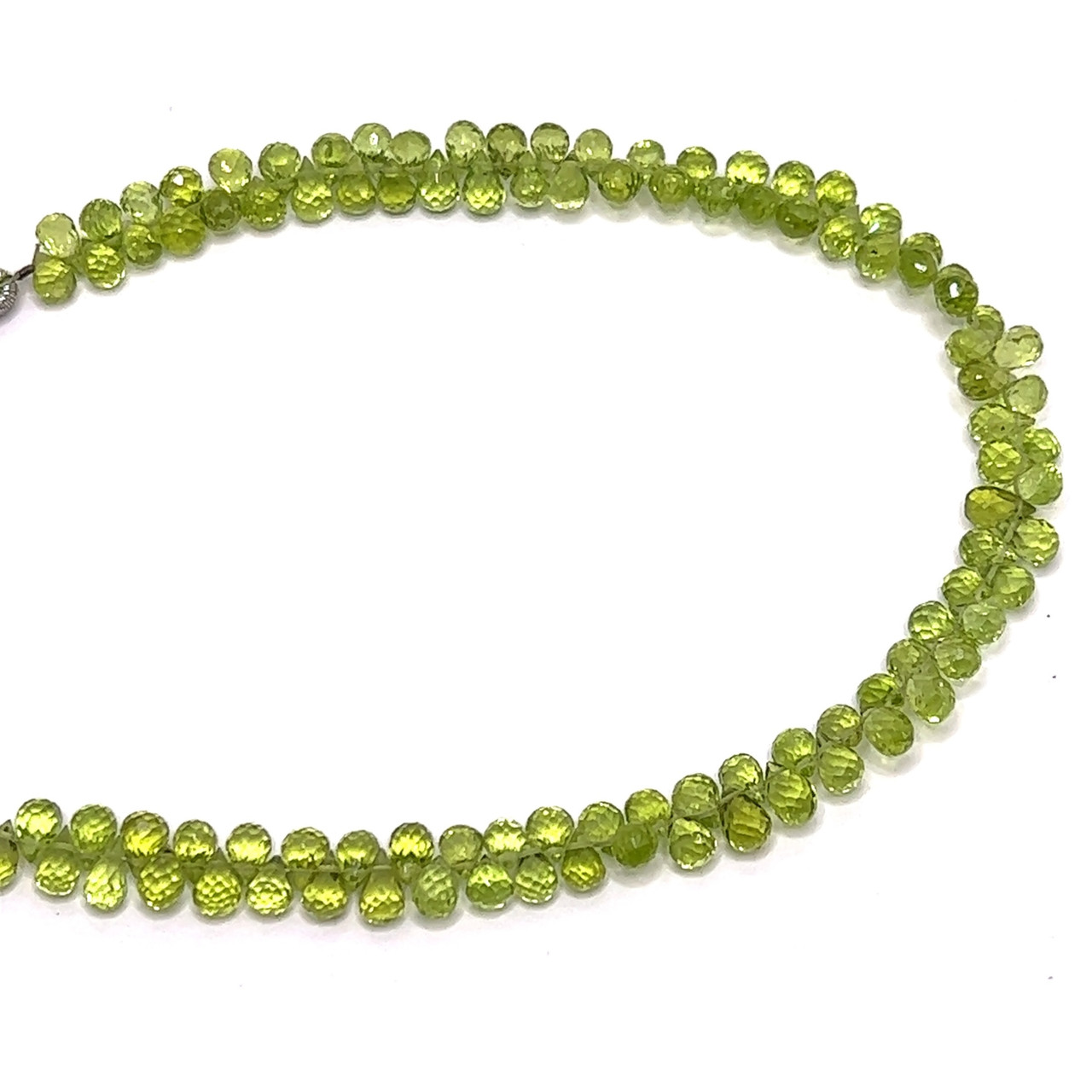 Natural Arizona Peridot Drop Briolette Faceted Beads | 5x3mm | 97 Pcs 52 Carats | Parrot Green | VVS Clarity | 8 Inch Strand Semiprecious Gemstone Jewelry Making