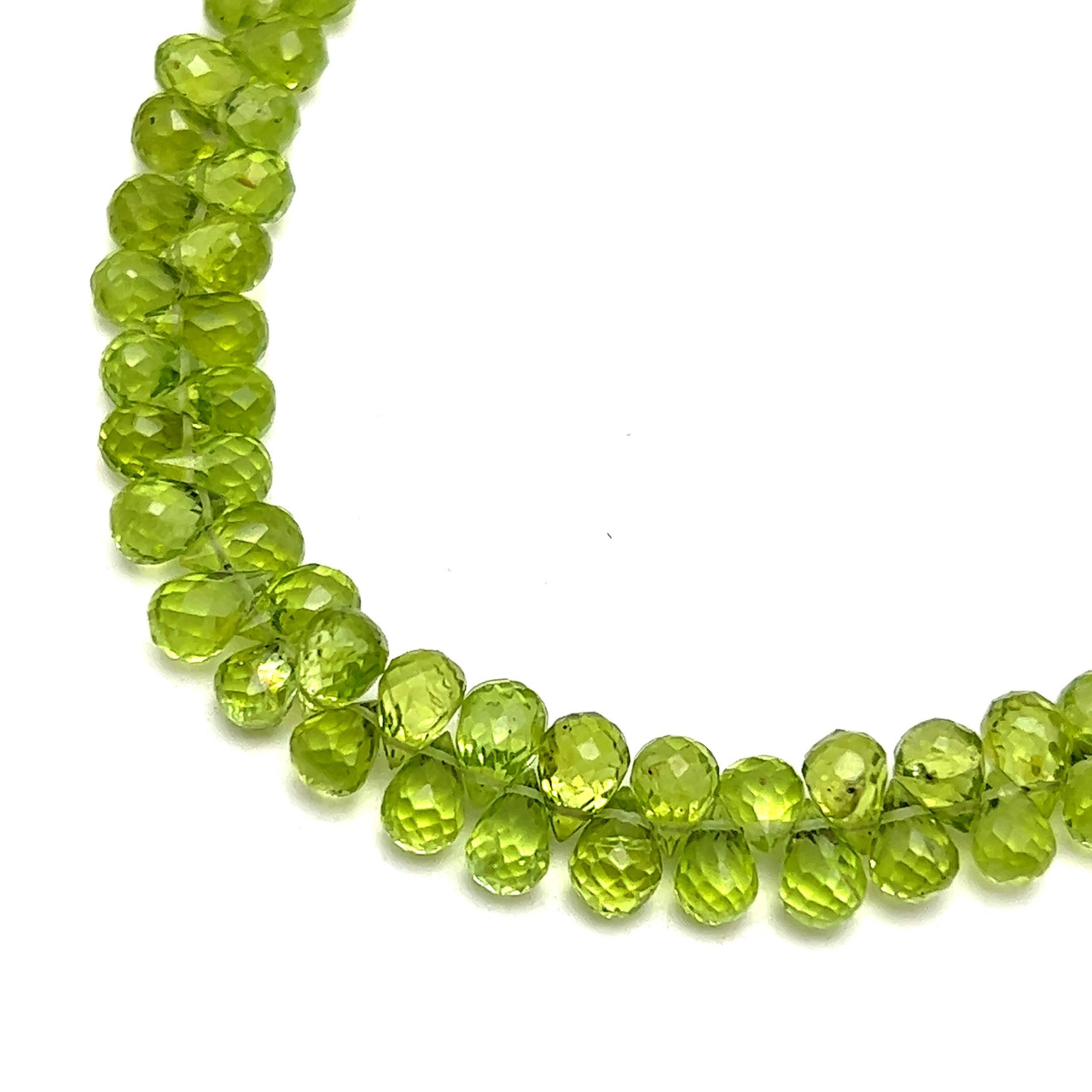 Natural Arizona Peridot Drop Briolette Faceted Beads | 5x4mm | 89 Pcs 61 Carats | Lime Green | VS Clarity | 8 Inch Strand Semiprecious Gemstone Jewelry Making