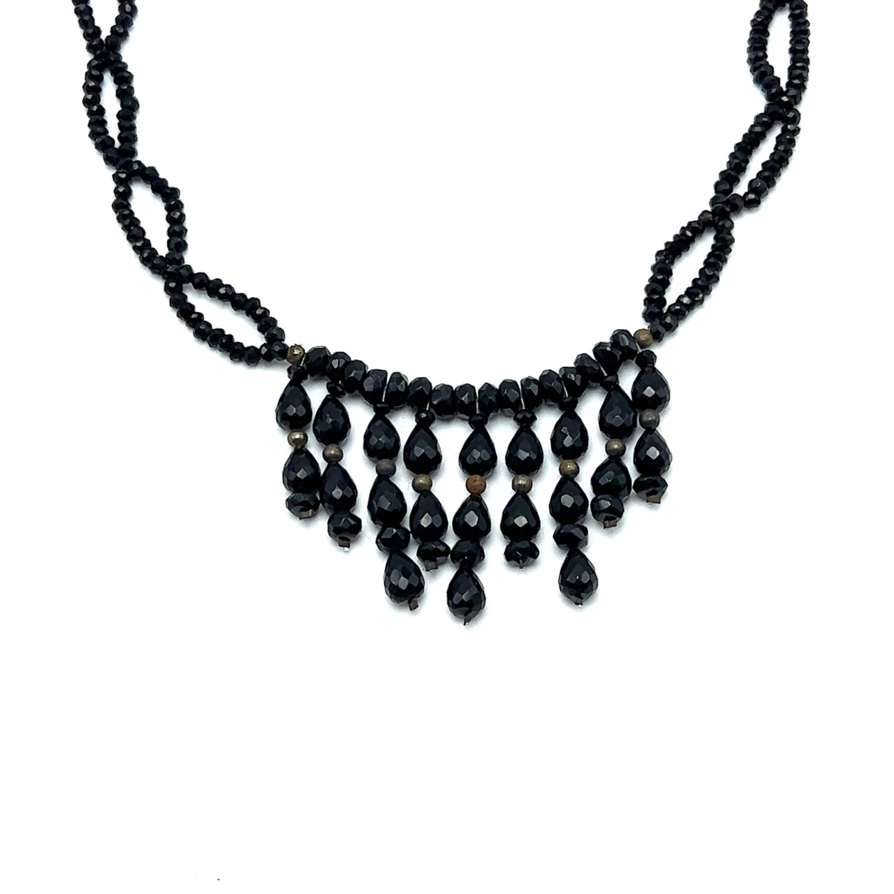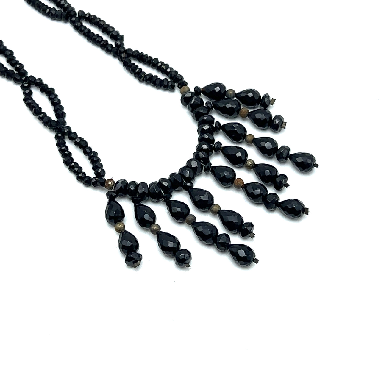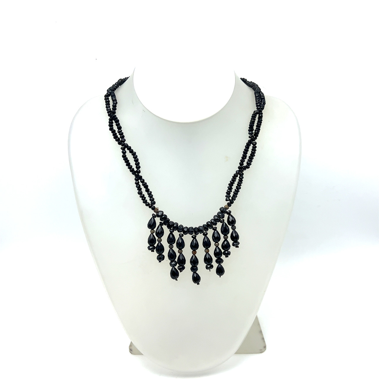 Natural Black Onyx Drop Rondelle Facet Bead Semiprecious Necklace