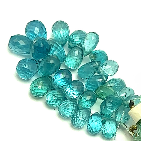 Natural Brazilian Apatite Briolette Beads | Faceted Drop 7x5, 8x6, 9x6, 10x7mm | 30 Pcs 58 Carats | Cyan Blue | VVS Clarity | December Birthstone for Jewelry Making