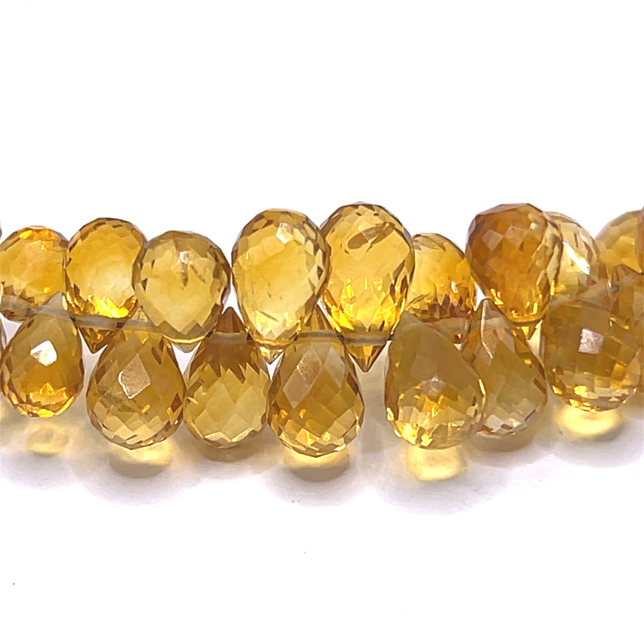 Natural Citrine Gemstone Beads | 7x5mm Drop Briolette Cut | 93 Pcs 86 Carats | Amber Yellow VVS1 Clarity | November Birthstone Jewelry Beads