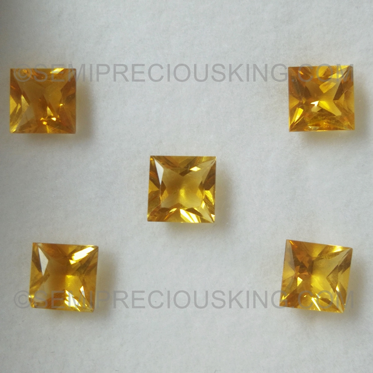 Name:Natural Citrine Square Princess Cut 6.5mm Amber Yellow Color VVS Clarity Loose Gemstone