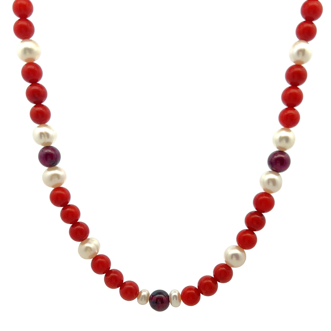 Natural Coral & Garnet Pearl Chakras Gemstone Necklace