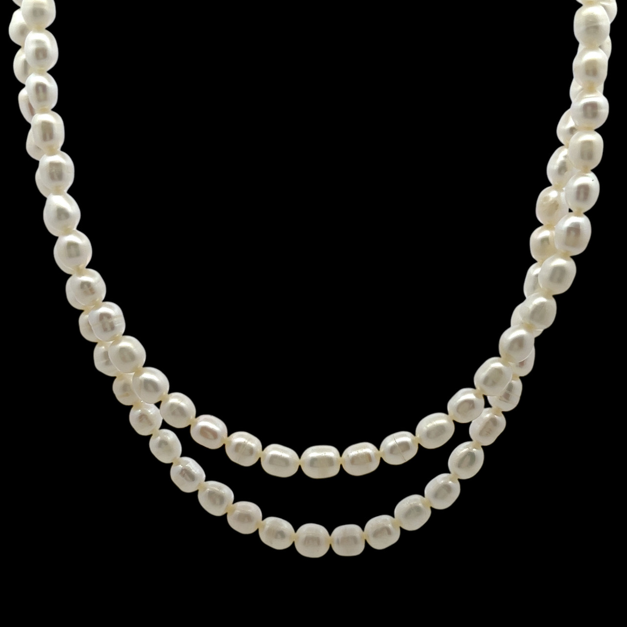 Freshwater Pearl Necklace | Two-Layered Style | 6x5mm | White | Smooth Plain Ringed | Very Good Quality | 16.5” | 126 Pcs | 152 Carats
