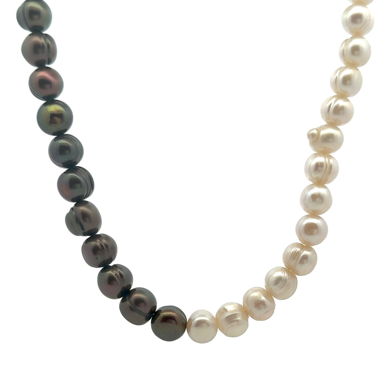 Freshwater Pearl Necklace | Modern Contrast | 8x7mm Ringed | White & Dark Brown | Smooth Plain | 16.7” | 53 Pcs | 162 Carats