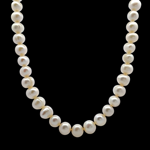 Freshwater Pearl Necklace | 10x9mm | White | Smooth Plain Ringed | Very Good Quality | 17” | 52 Pcs | Versatile Classic