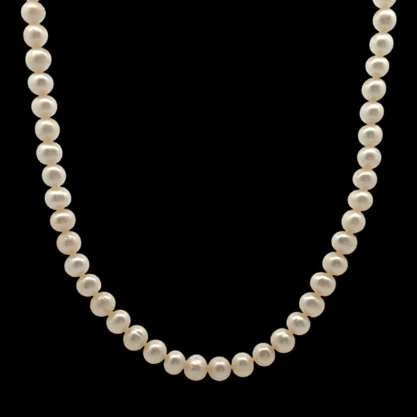 Freshwater Pearl Necklace | Classic | 5.50mm Round | White | Smooth Plain | 24.6” | 119 Pcs | 159 Carats | June Birthstone