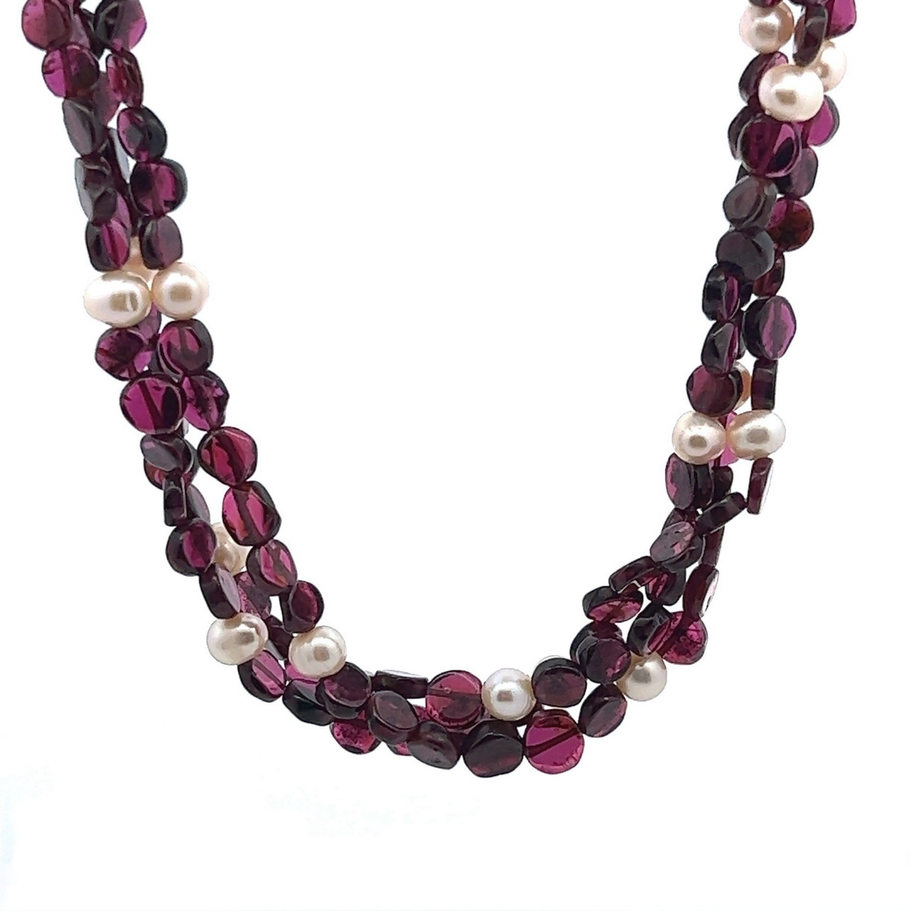 Garnet Natural Button & Pearl Twisted Gemstone Necklace