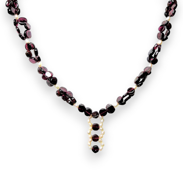 Natural Garnet Button with Rice Pearl Birthstone Necklace