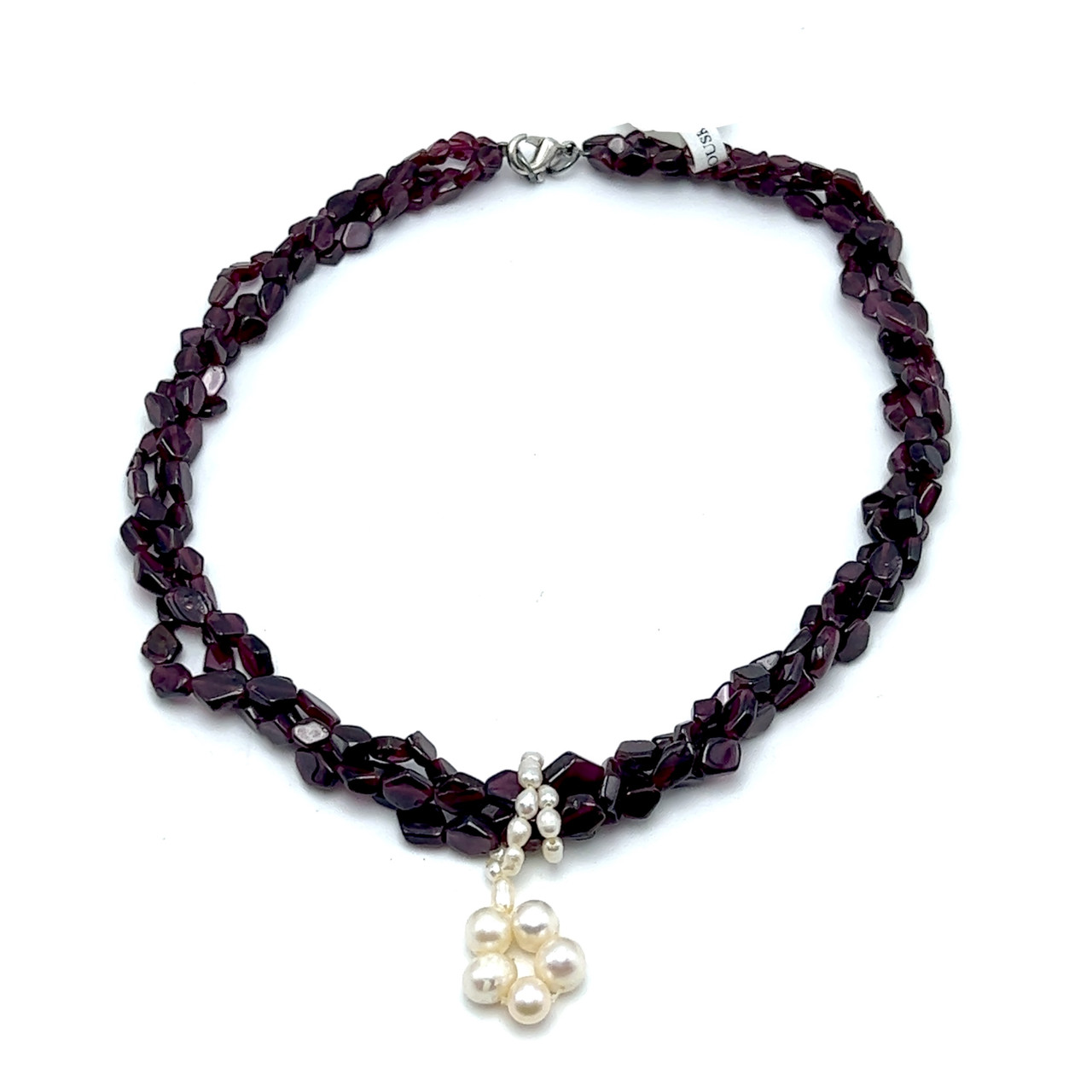 Garnet Natural Fancy & Plain Pearl Twisted Gemstone Necklace