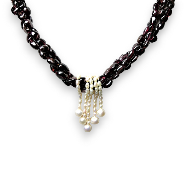 Natural Garnet with Mixed Pearl Twisted Smooth Plain Necklace | Multi Strand Design | Handcrafted Heritage Royal Jewelry for Women