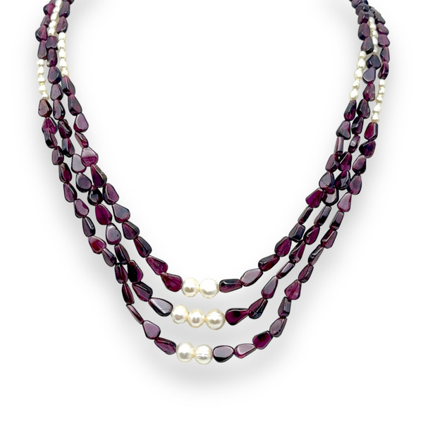 Natural Garnet Pear & Pearl Layered Gemstone Necklace