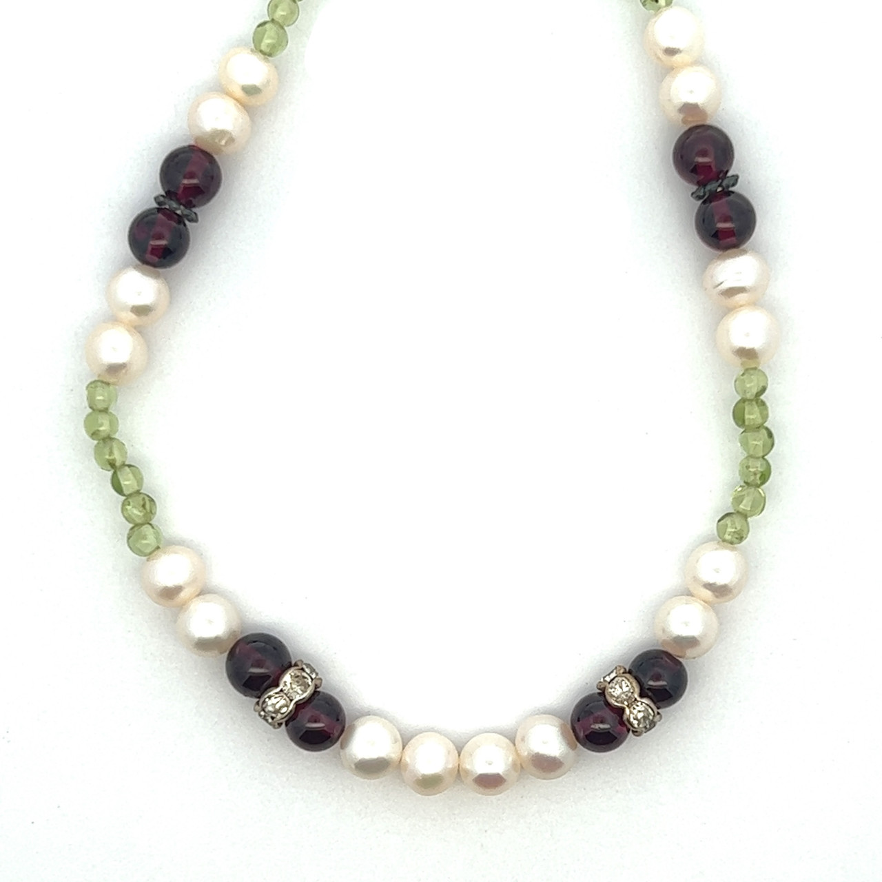 Natural Garnet Peridot Pearl Round Plain Handmade Gemstone Necklace