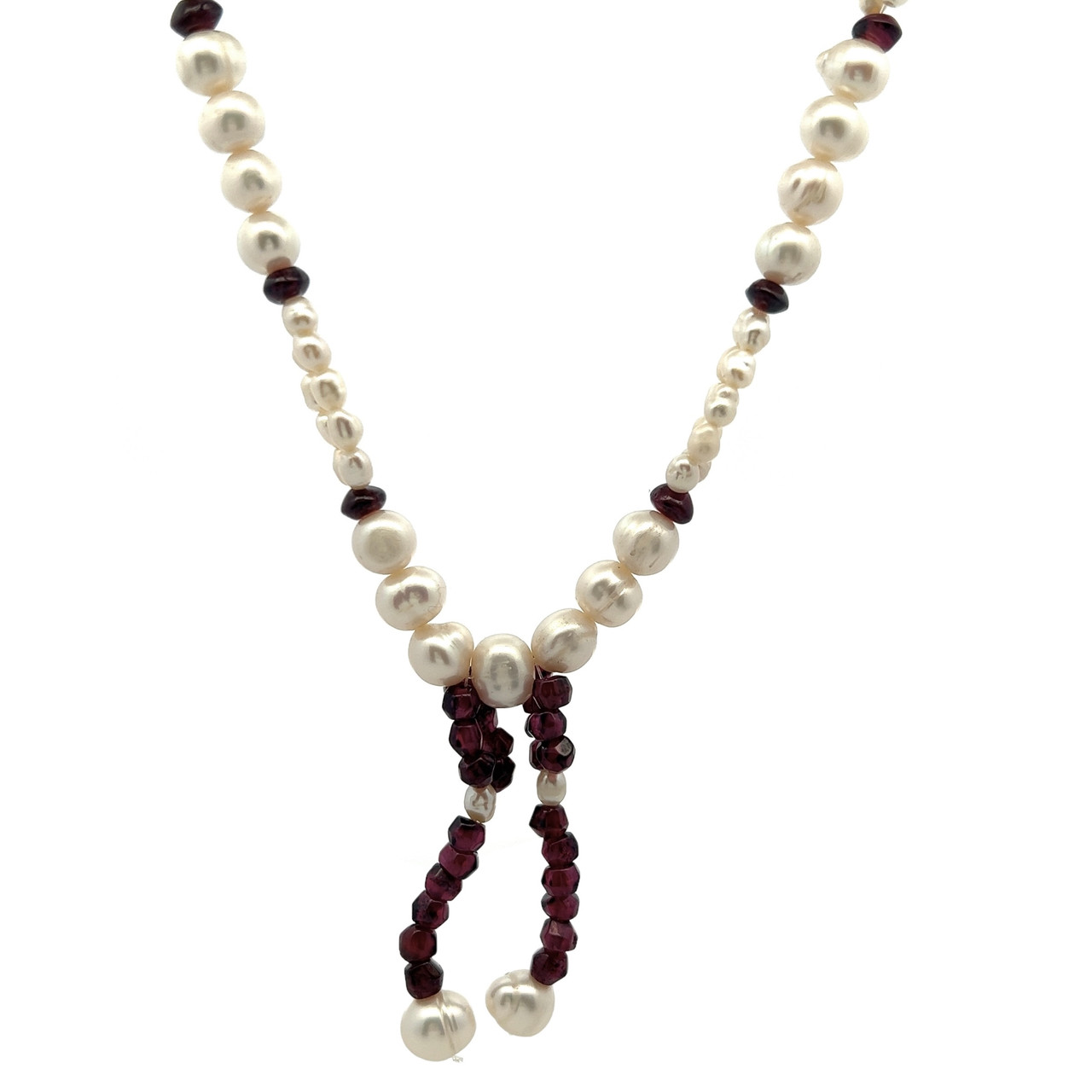 Garnet Natural Rondelle & Pearl Gemstone Crafted Necklace