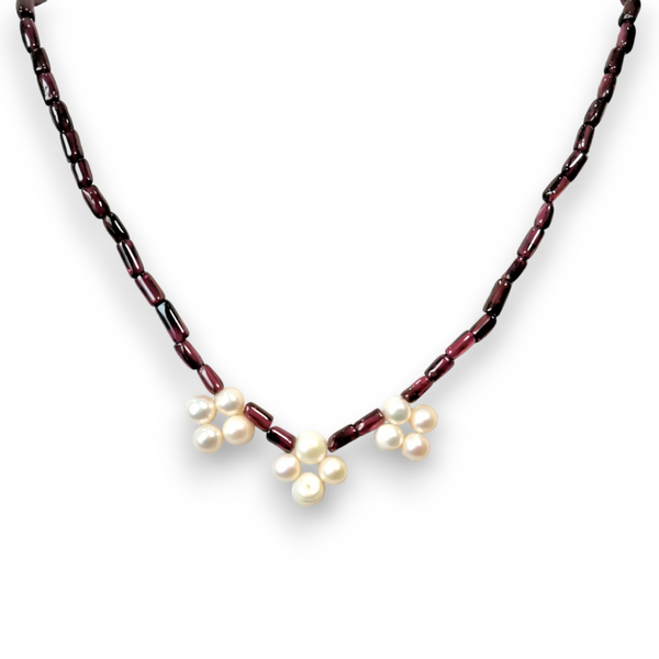 Garnet Natural with Pearl Plain Round Gemstone Necklace