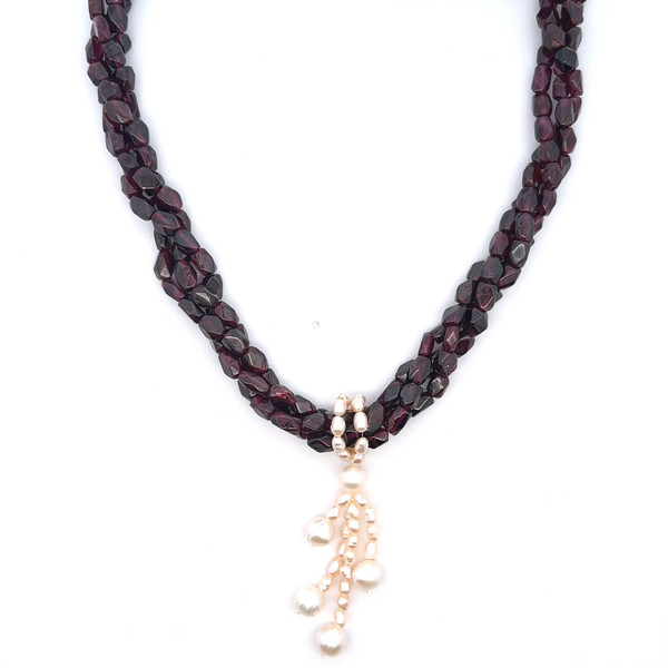 Garnet Natural with Smooth Pearl Gemstone Necklace