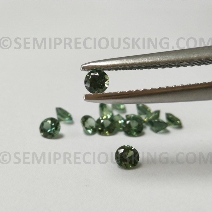 Name:Natural Green Sapphire 2.4mm Round Diamond Cut VS Clarity Winsor Green Color Loose Gemstone