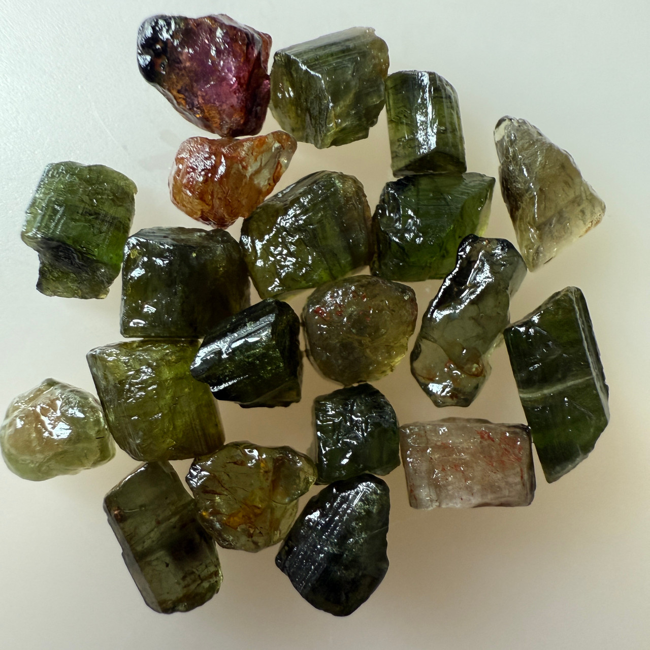 Natural Green Tourmaline Rough 25.06 Carats 20 Piece 4A Quality Raw Uncut October Birthstone Gemstone