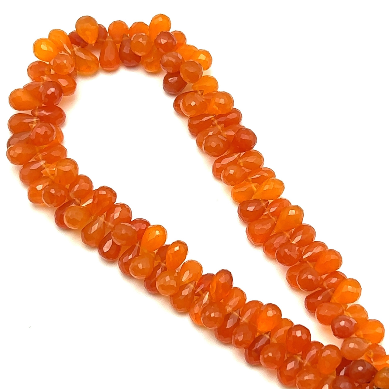 Natural Madagascar Carnelian Briolette Faceted Drop Bead | 7x5mm | 117 Pcs 155 Carats | Salamander Orange | VVS Clarity | Semiprecious Loose Gemstone for Jewelry Making