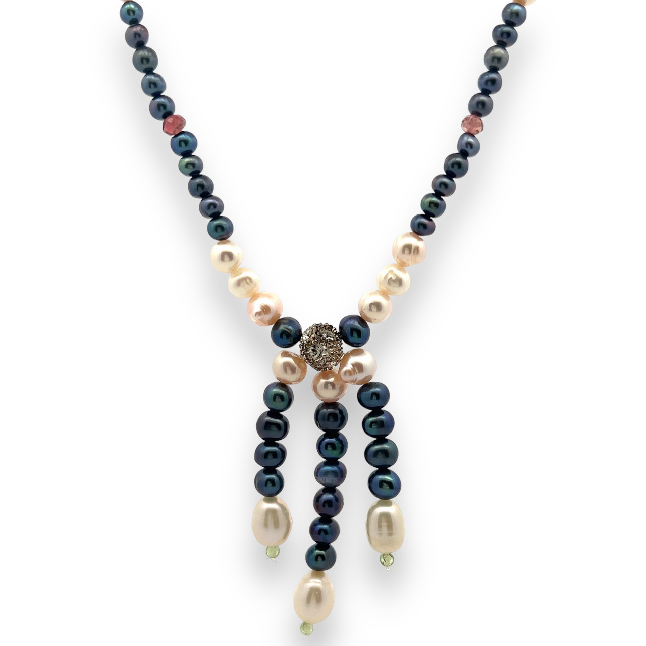 Multi Tourmaline Natural Pearl Peridot Plain Ball Handmade Necklace Jewelry