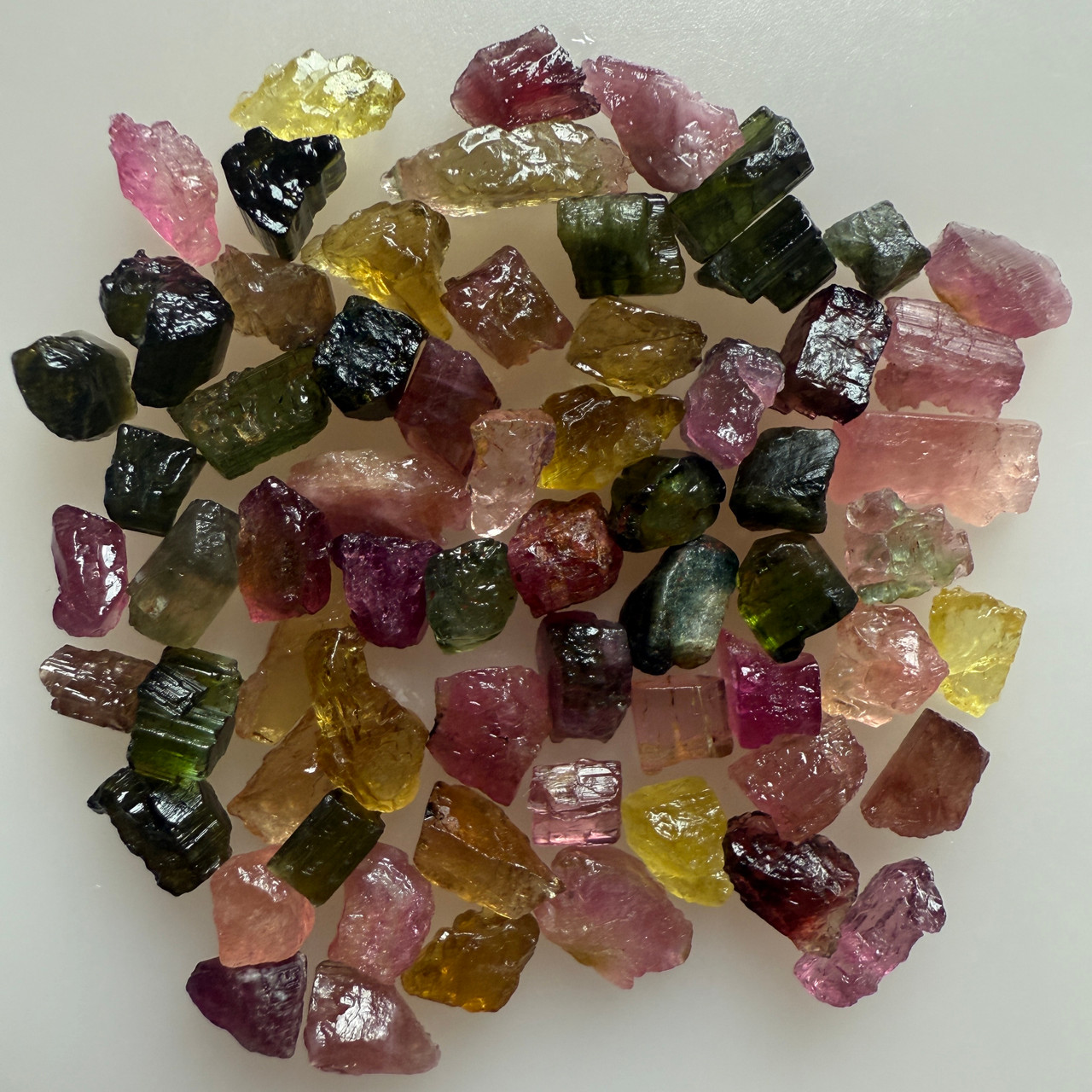 Natural Multi Tourmaline Rough 60.78 Carats 65 Piece 4A Quality Raw Uncut October Birthstone Gemstone