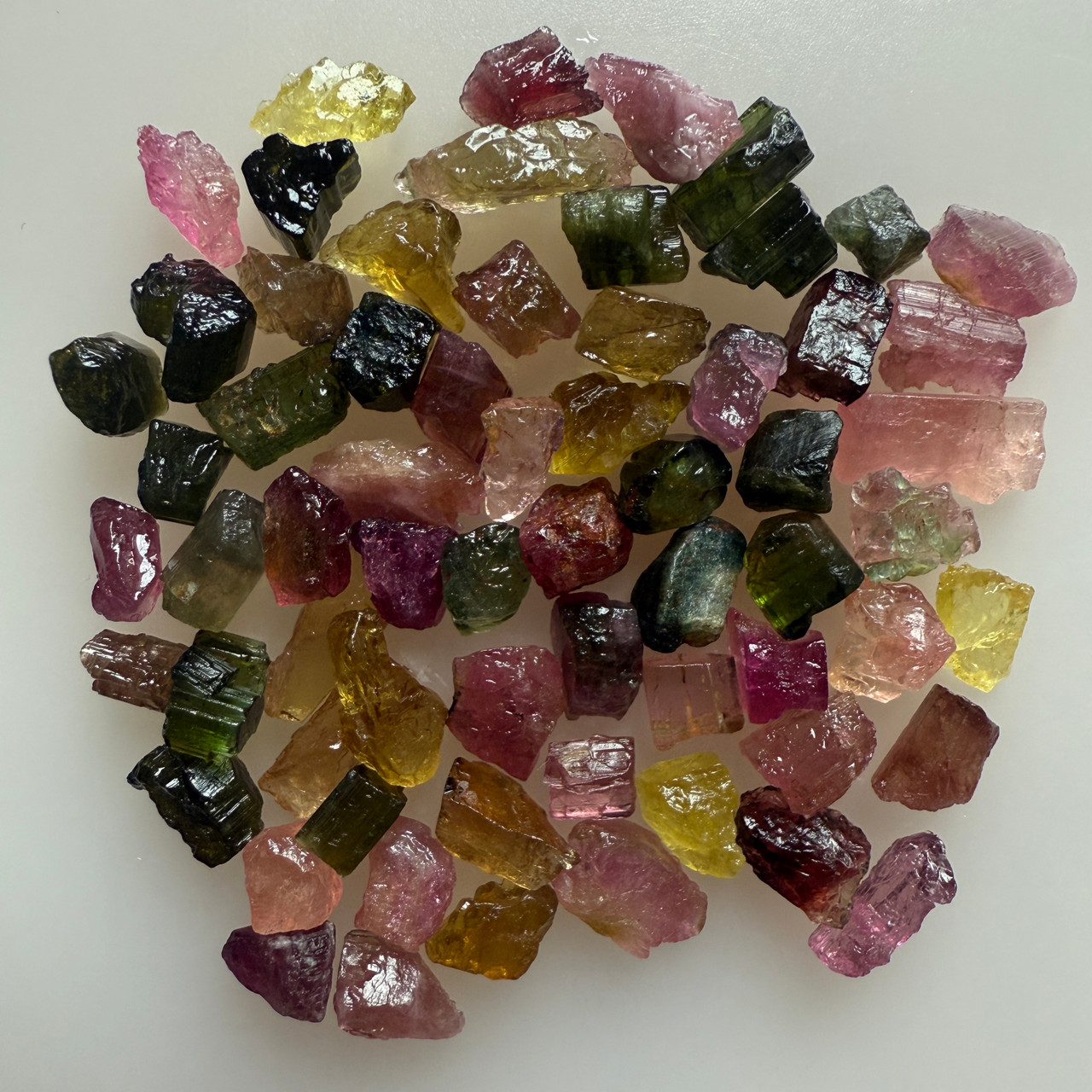 Natural Multi Tourmaline Rough 60.78 Carats 65 Piece 4A Quality Raw Uncut Birthstone Gemstone