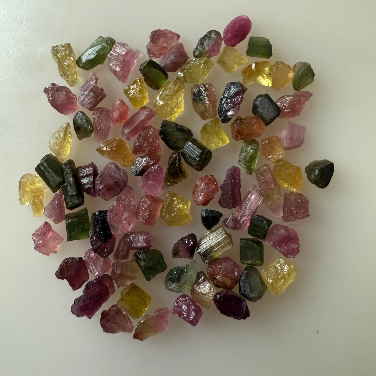 Natural Multi Tourmaline Rough 66.04 Carats 80 Piece 4A Quality Raw Uncut Birthstone Gemstone
