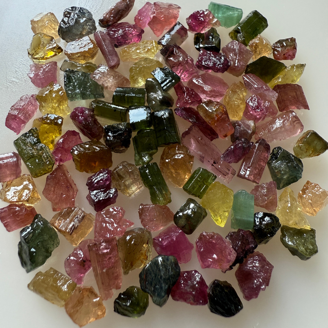 Natural Multi Tourmaline Rough 67.3 Carats 86 Piece 4A Quality Raw Uncut Birthstone Gemstone