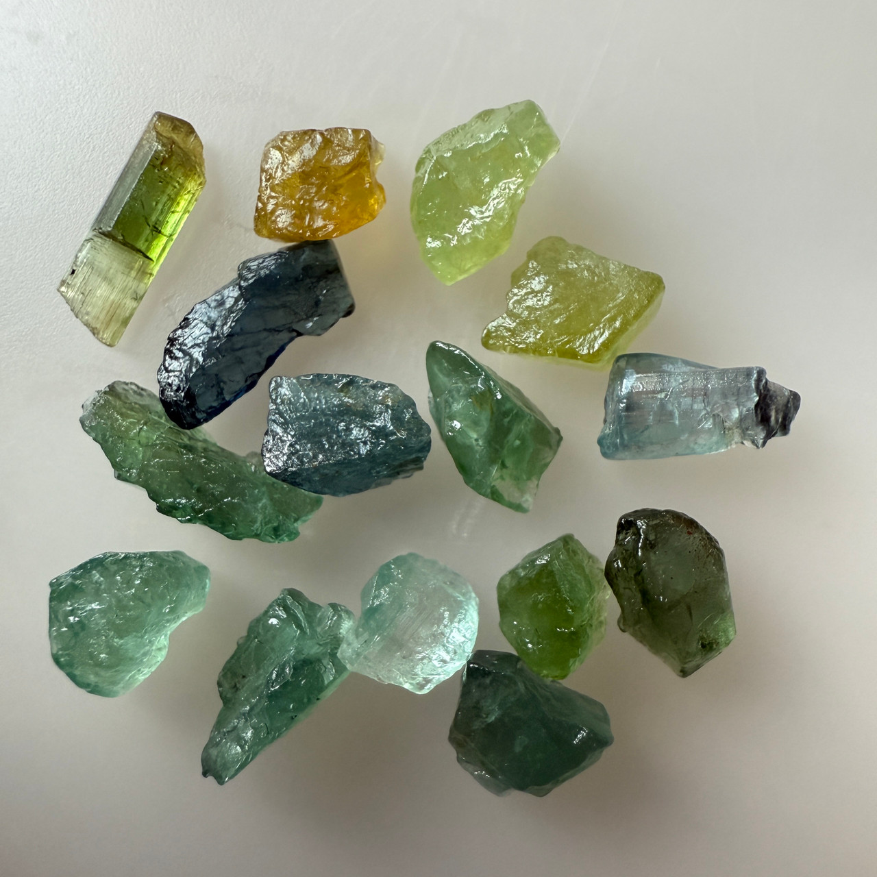 Natural Pariaba Mix Color Tourmaline Rough 13.17 Carats 14 Piece 4A Quality Raw Uncut October Birthstone Gemstone